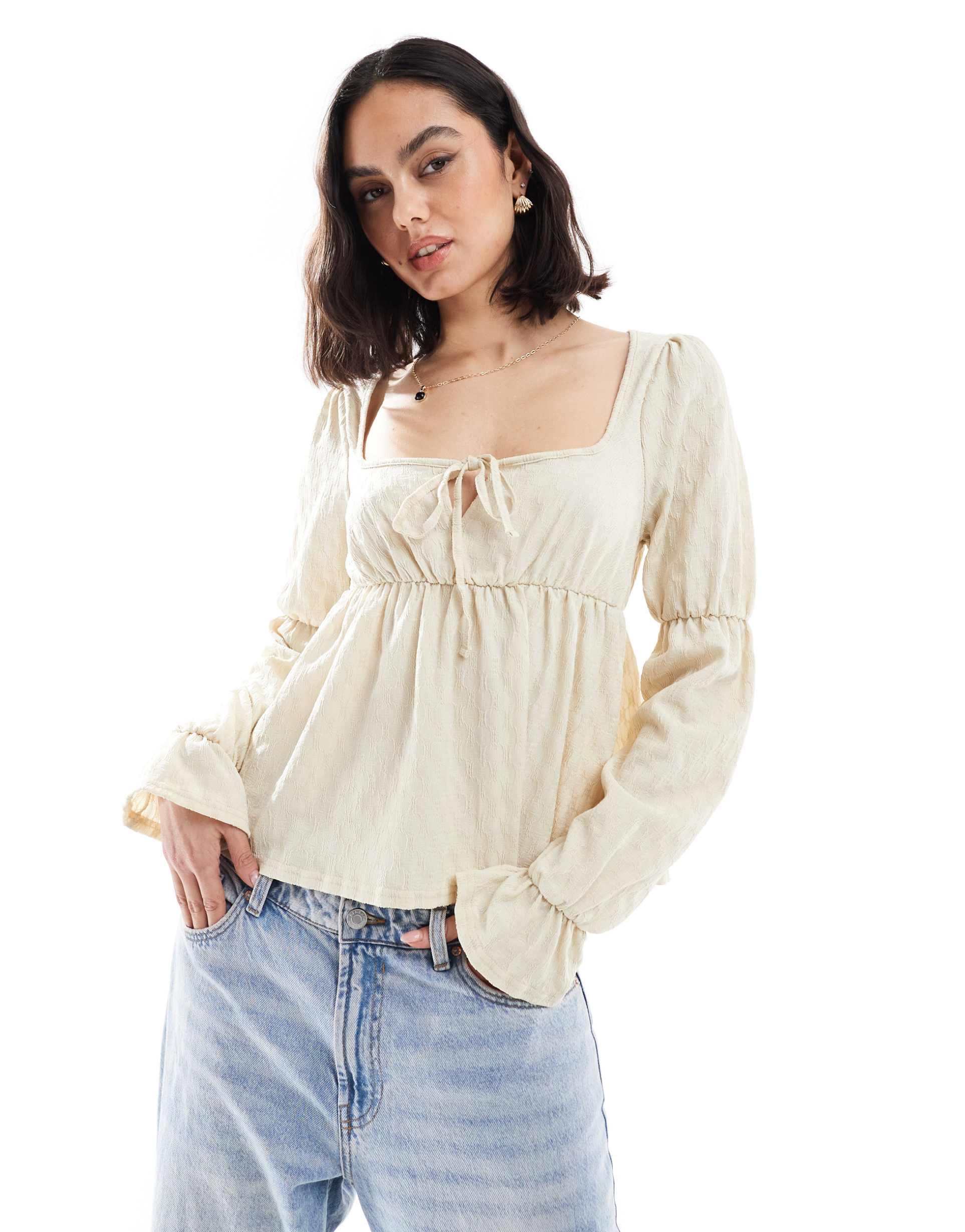 MISS SELFRIDGE LONG SLEEVE MILKMAID PEPLUM TOP IN NATURAL