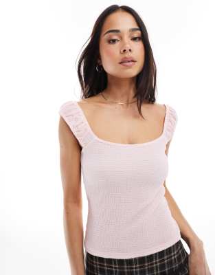 MISS SELFRIDGE TEXTURED GATHERED SLEEVE TOP IN LIGHT PINK