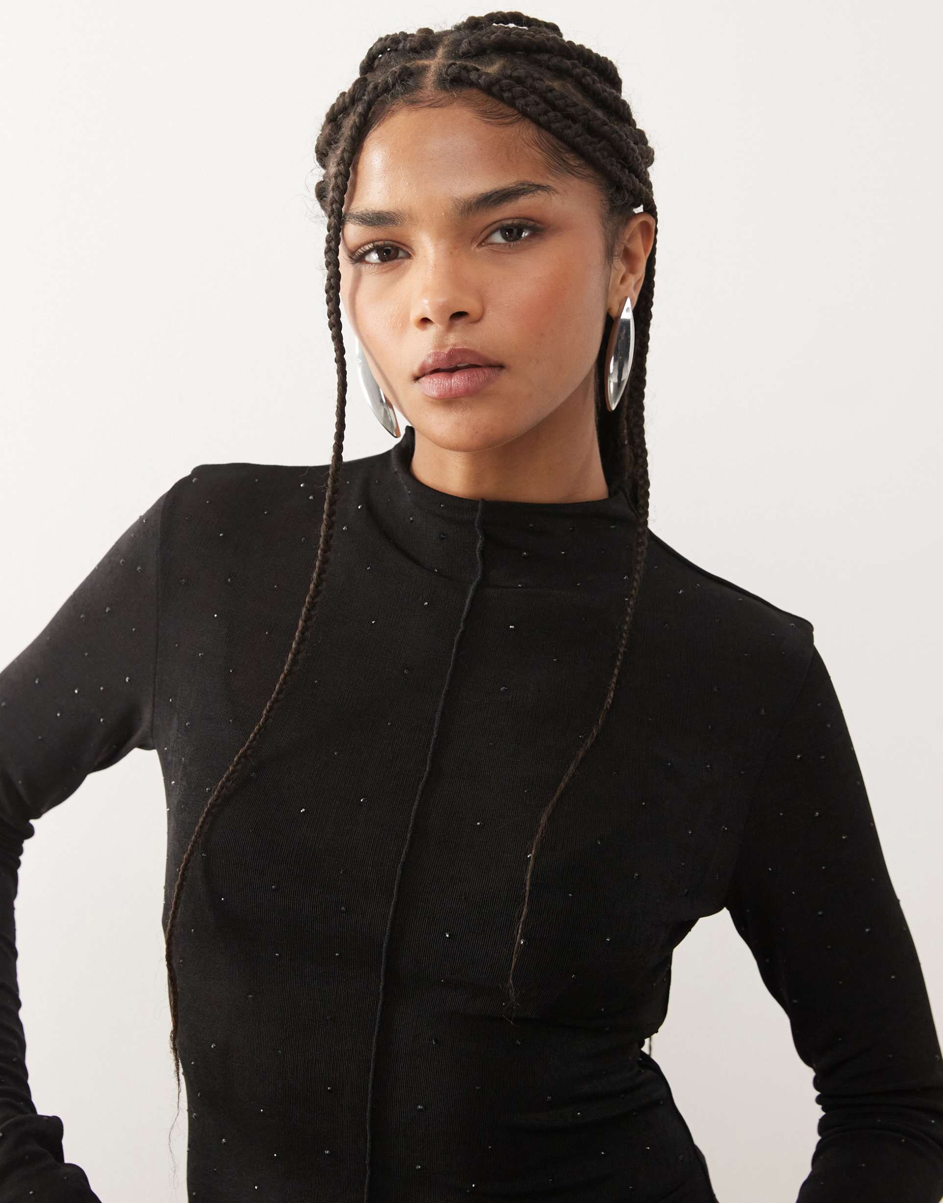 MONKI LONG SLEEVE MESH RHINESTONE TOP IN BLACK
