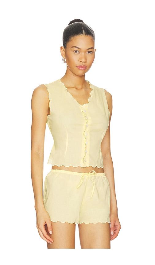 MONTCE X ELSA HOSK SCALLOPED VEST TOP IN YELLOW.