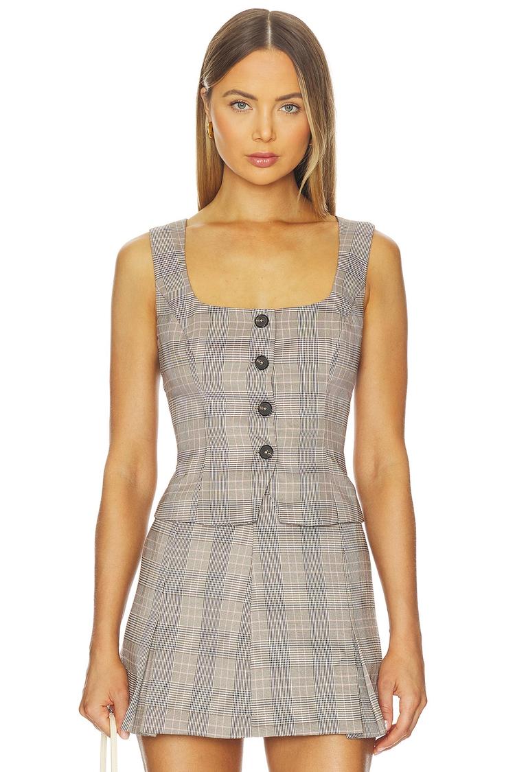 Sharp tailoring and a classic checkered pattern define this fitted shell top with a flattering square neckline and wide straps. Crafted from smooth polyester, it features a front button closure and an adjustable back tie for a personalized fit. The notched hem adds a subtle design edge, making it perfect for casual outings, business casual settings, or weekend brunches. Its sleeveless silhouette and waist length offer a versatile piece that pairs effortlessly with skirts or trousers across spring, summer, and autumn seasons.