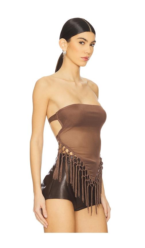 MORE TO COME SHION TOP IN BROWN.