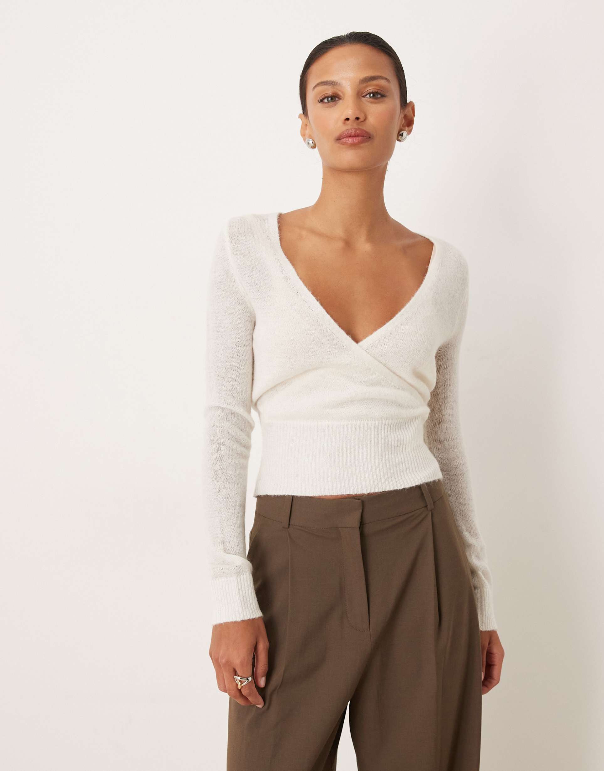 MOTEL NILZA WRAP KNIT TOP IN WHITE