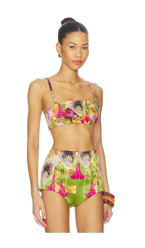 MUMA WORLD BEADED FLORAL CANOPY CROP TOP IN GREEN.