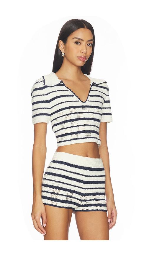 MY BEACHY SIDE VERA HAND-CROCHETED POLO TOP IN NAVY.