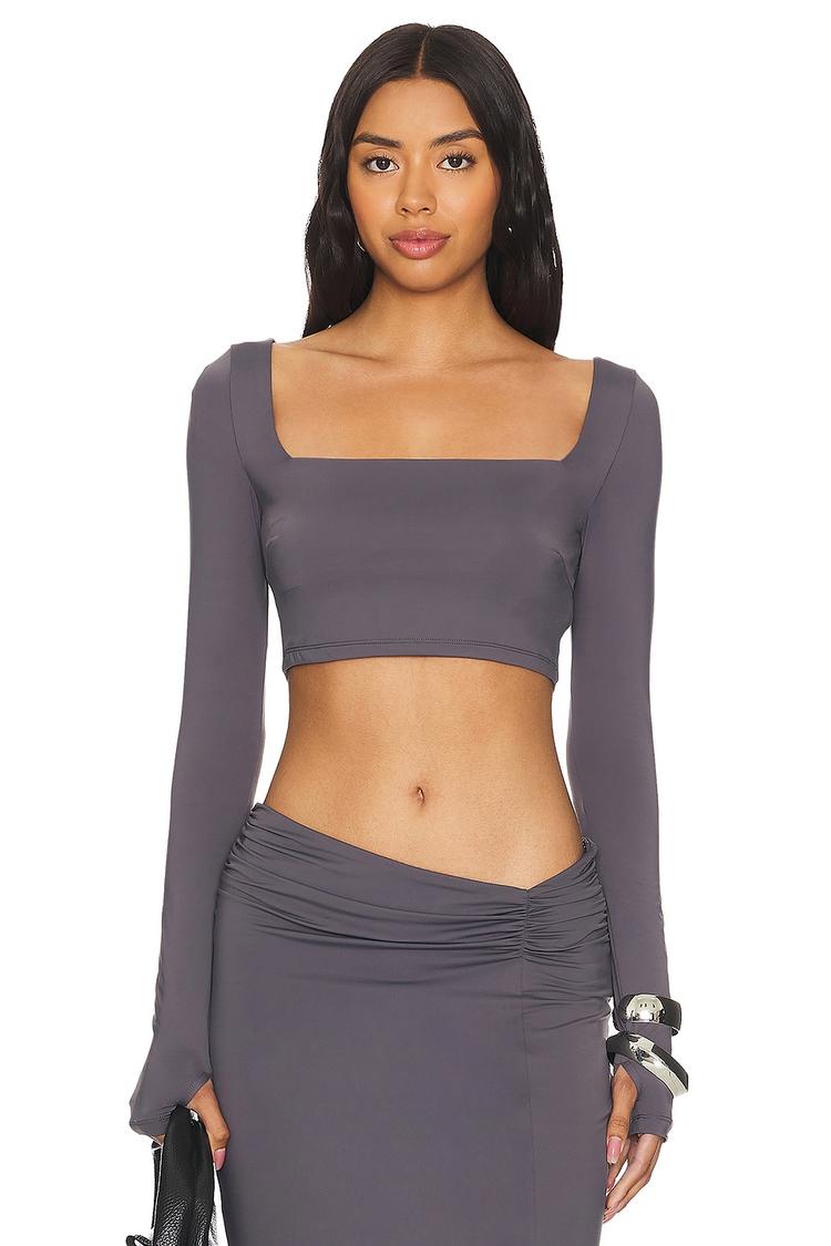 Sleek and fitted, this cropped top features a modern square neckline and long, regular sleeves with thumbholes for an edgy yet minimalist appeal. Crafted from a stretchy nylon-elastane blend, it offers a smooth matte finish in a versatile dark gray shade. Ideal for casual outings, night events, or brunch gatherings, its clean silhouette and subtle functional detail make it a trendy staple that pairs effortlessly with high-waisted bottoms. The pullover design ensures comfort while maintaining a chic, body-hugging fit perfect for all seasons.