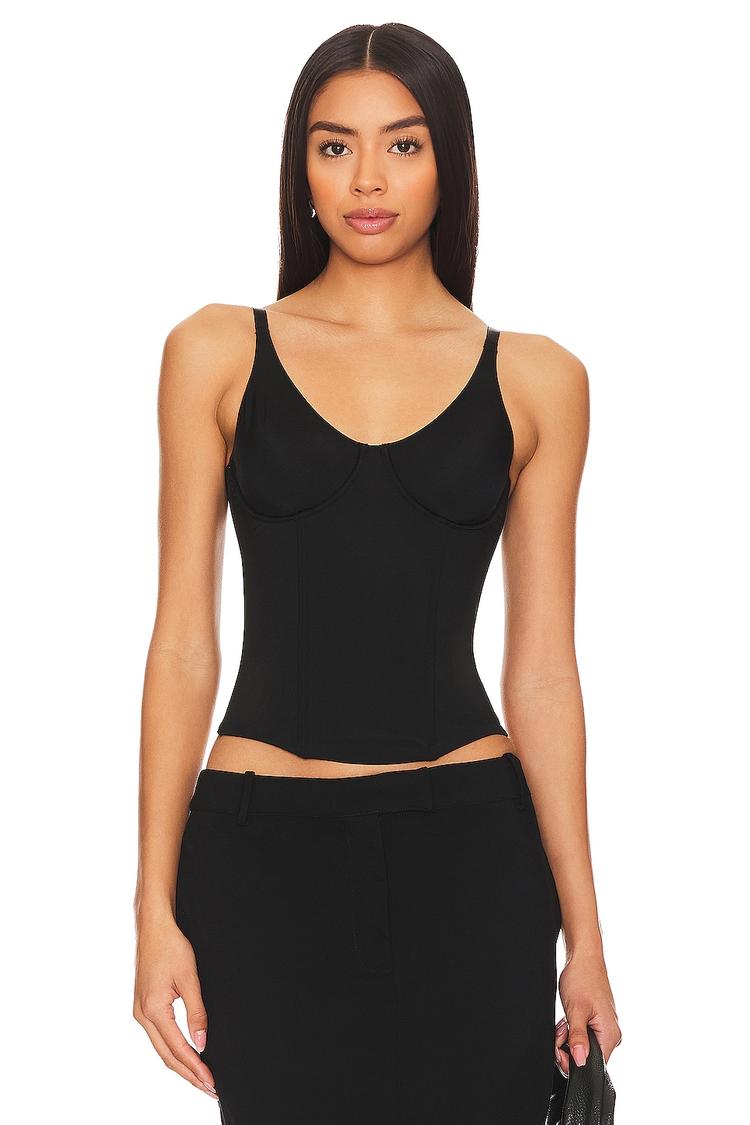 Sleek and fitted, this matte black Liquid Tank Bustier offers a modern silhouette with its corset-inspired boned bodice and unpadded underwire cups. Crafted from a smooth nylon-elastane blend, it features delicate spaghetti straps and a flattering U-neckline, ending at waist length for an elegant finish. The back hook and eye closure ensures a secure fit, making it an ideal choice for casual days, night outs, or date nights. Its minimalist yet sexy design lends a confident edge to any ensemble, perfect for layering or wearing solo.