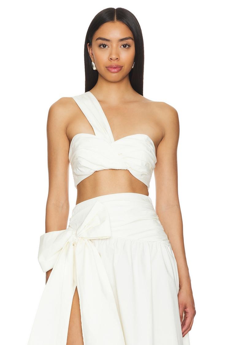 Clean lines and a crisp white poplin fabric define this cropped Brian Top with a fitted silhouette. Featuring a striking one-shoulder strap and a sweetheart neckline, this sleeveless piece highlights a contemporary and sexy vibe. The back hook and eye closure ensures a secure fit while maintaining a sleek profile. Ideal for spring and summer, this versatile top pairs perfectly for casual outings, brunch dates, or night out events, offering a chic and modern style statement.