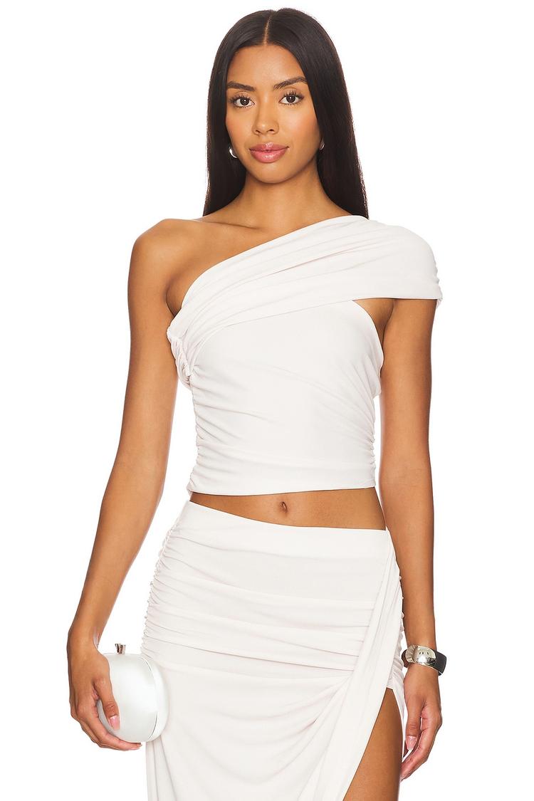 Asymmetric necklines and one-shoulder straps define this chic cropped top crafted from a soft viscose blend with a hint of elastane for stretch. The fitted silhouette is enhanced by delicate ruching along the front and sides, creating a sophisticated yet sexy look perfect for spring and summer evenings. Ideal for date nights, cocktail parties, or night outs, this white pullover top pairs beautifully with high-waisted skirts or pants, offering a modern and confident style statement.