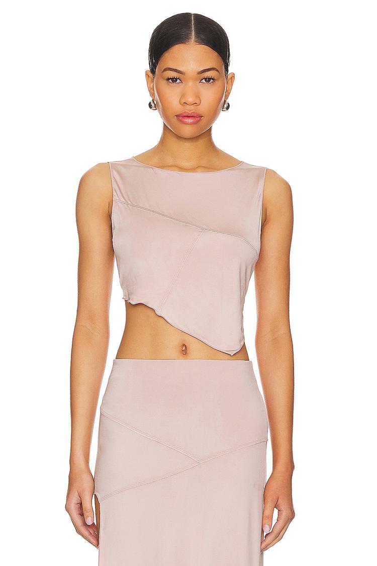 Lightweight rayon-elastane fabric and a fitted silhouette define this cropped Myla Top in a soft dusty pink hue. Featuring a round neckline and sleeveless styling with an eye-catching asymmetrical hem, it strikes a perfect balance between modern and sexy. Ideal for spring and summer days, this pullover top pairs effortlessly with matching skirts or jeans for casual outings, brunch dates, or girls night. The covered back and clean lines add to its trendy appeal, making it a versatile essential for a confident, flirty look.