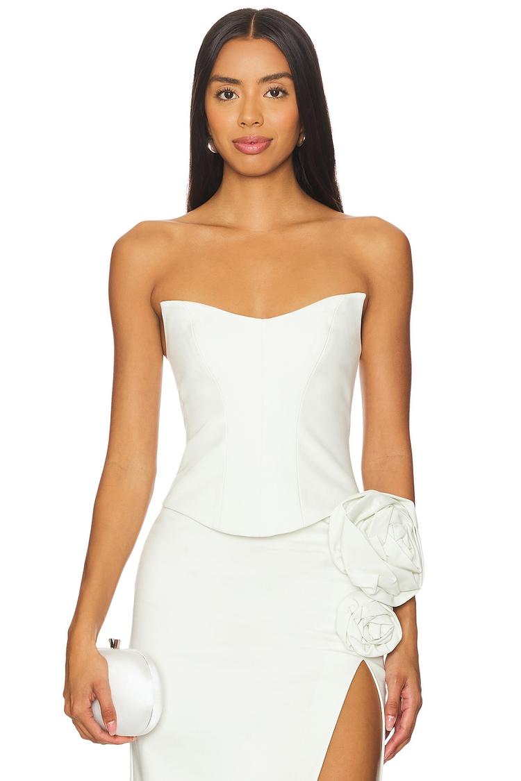 A refined white cotton blend corset with a structured boned bodice and an elegant sweetheart neckline. This fitted, strapless piece features a sleek exposed back zipper closure, offering a chic silhouette that ends at the waist length. Its midweight twill linen fabric provides both comfort and sophistication, making it ideal for cocktail parties, date nights, and night outs. The minimalist solid white design emphasizes timeless elegance and versatile styling options.