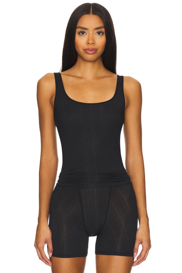 Soft, wispy stretch modal-lycra jersey fabric forms this slim-fitting tank top, featuring a flattering scoop neckline at front and back. Subtle vertical stripes created by drop-needle stitching add refined texture to the waist-length silhouette with wide straps. Its lightweight, breathable material makes it versatile for casual outings, loungewear days, or everyday wear. Easy pull-on styling enhances comfort, while the minimalist design ensures seamless layering or standalone wear for a chic, understated look.