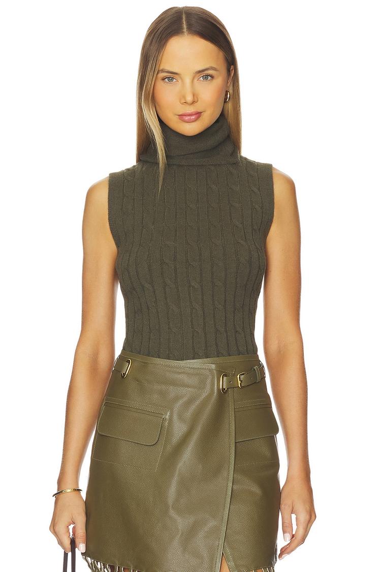 Midweight knit fabric and a fitted silhouette define this sleeveless tank top with a chic high turtle neckline and a striking open back. In a matte olive shade, it pairs perfectly with skirts or trousers for casual outings, business casual settings, or brunch dates during autumn and winter. The pullover style ensures easy wear while the minimalist design offers a timeless appeal, making it a versatile staple for layering or standalone wear.