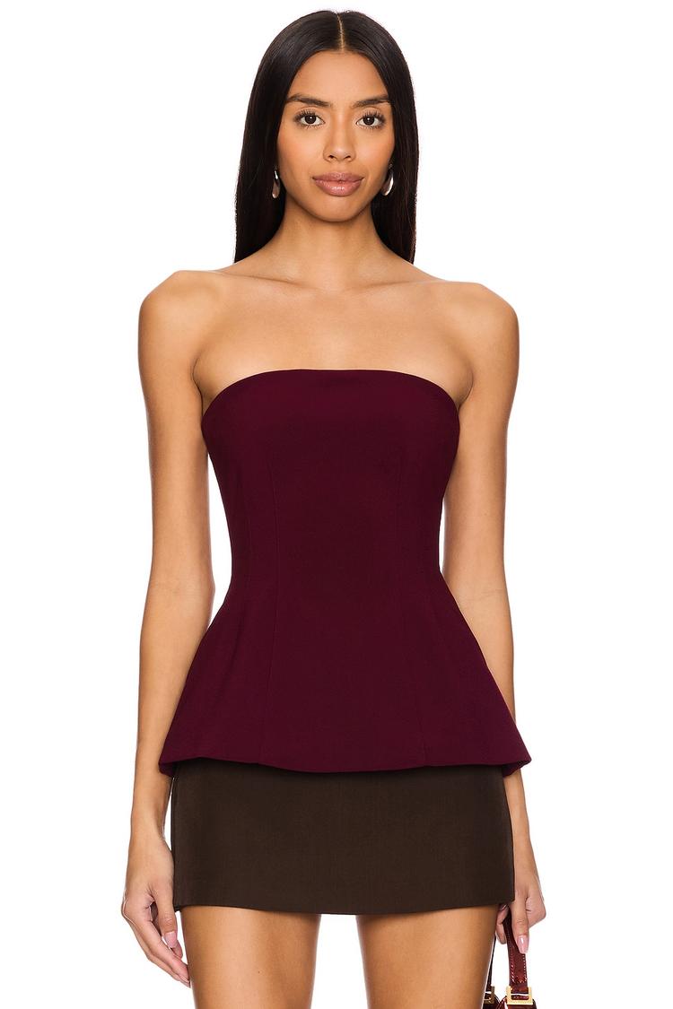 A matte burgundy crepe corset top with a strapless straight neckline and fitted waist-length silhouette, featuring boned sides for structure and an invisible back zipper closure. This sophisticated and sexy piece offers a modern chic vibe perfect for casual outings, date nights, or girls night events. The sleeveless design highlights the shoulders while the midweight fabric ensures comfort and shape retention. Versatile and stylish, it pairs effortlessly with skirts or pants, making it a standout addition to your all-weather wardrobe.