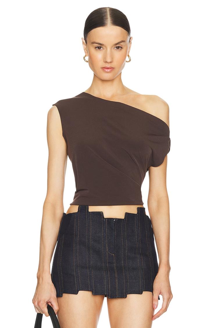 The sleek silhouette of this asymmetric drop-shoulder top offers a contemporary yet minimalist vibe in a rich matte brown hue. Crafted from a polyester-spandex blend, it provides comfortable stretch with a regular fit that drapes nicely to hip length. The sleeveless design with a straight neckline and a subtle off-shoulder detail makes it versatile for casual days, brunch outings, or urban streetwear looks. Effortlessly stylish, this pullover top balances modern chic with ease, ideal for all weather wear and layering options.