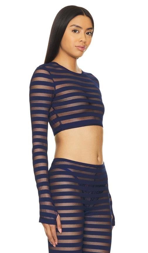 NORMA KAMALI CROPPED LONG SLEEVE CREWNECK TOP IN NAVY.