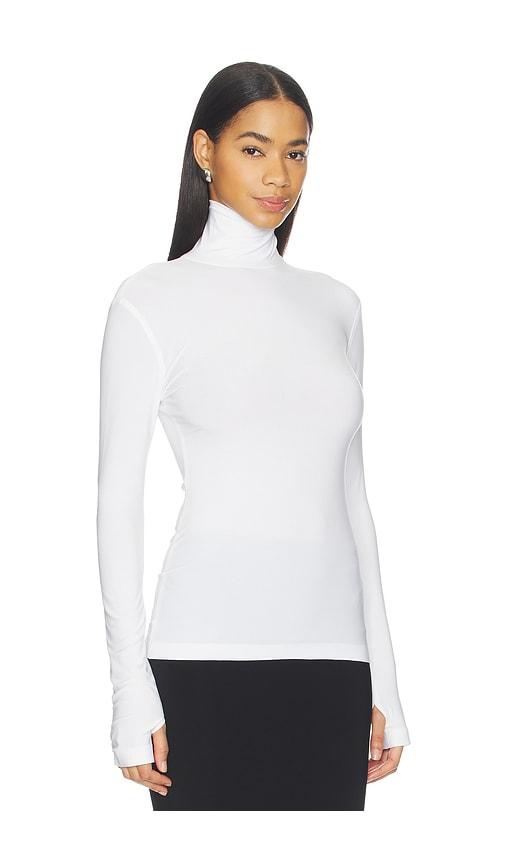 NORMA KAMALI SLIM FIT LONG SLEEVE TURTLE TOP IN WHITE.