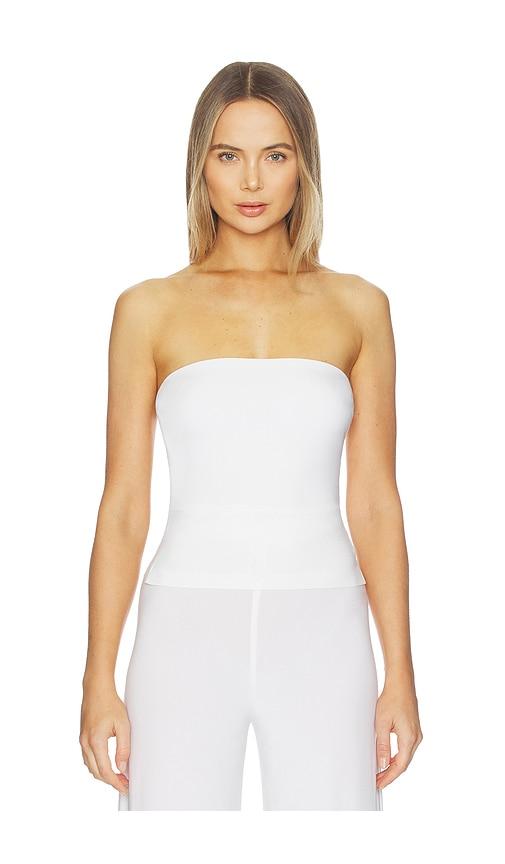 NORMA KAMALI X LIFESTYLE STRAPLESS TOP IN WHITE.