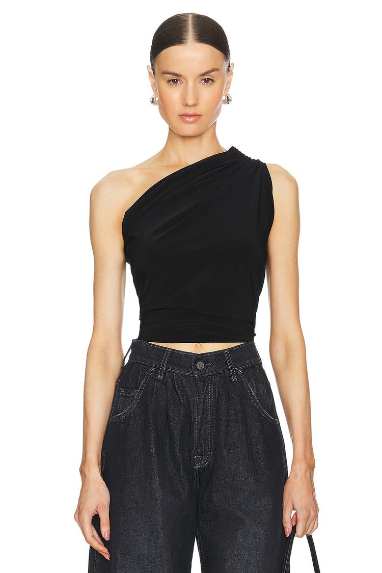Soft matte black polyester with a hint of spandex creates a comfortable, loose-fitting peasant top featuring an asymmetric one-shoulder neckline and strapless sleeve styling. The hip-length silhouette is enhanced with delicate ruffles across the bodice and front, lending a bohemian casual chic vibe. Ideal for spring and summer days, this versatile top transitions effortlessly from casual outings and brunch dates to night out events, offering both style and ease in one elegant piece.