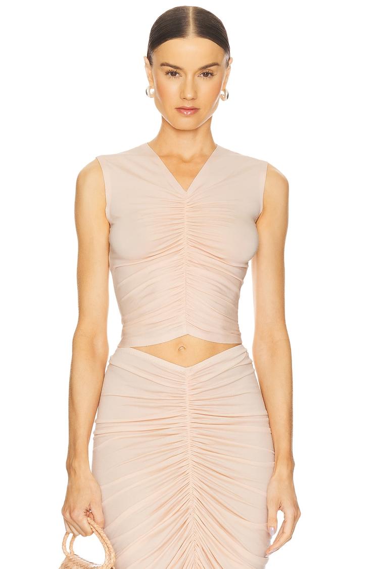 SLEEVELESS SHIRRED TOP