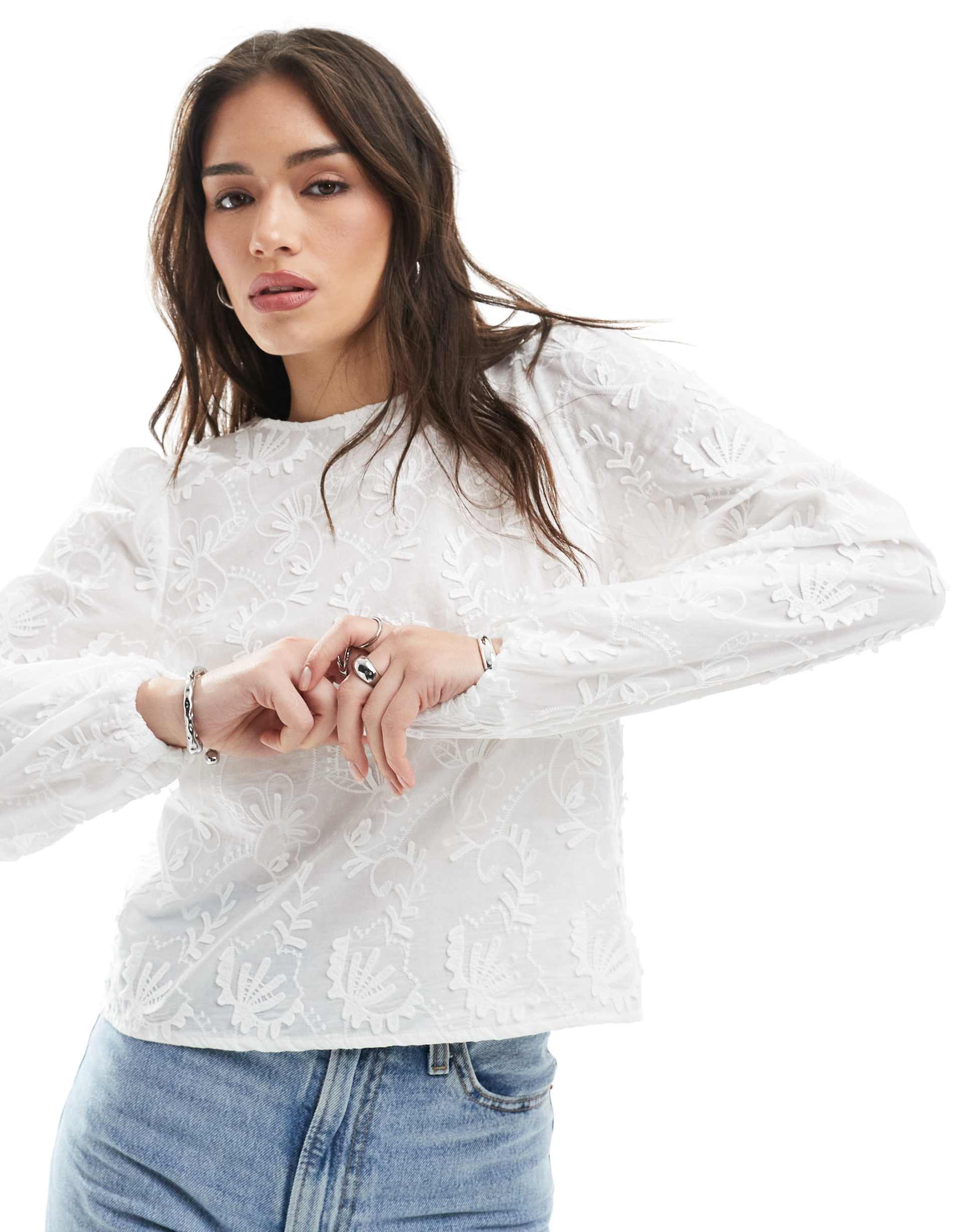 OBJECT LONG SLEEVE TOP WITH APPLIQUE IN WHITE