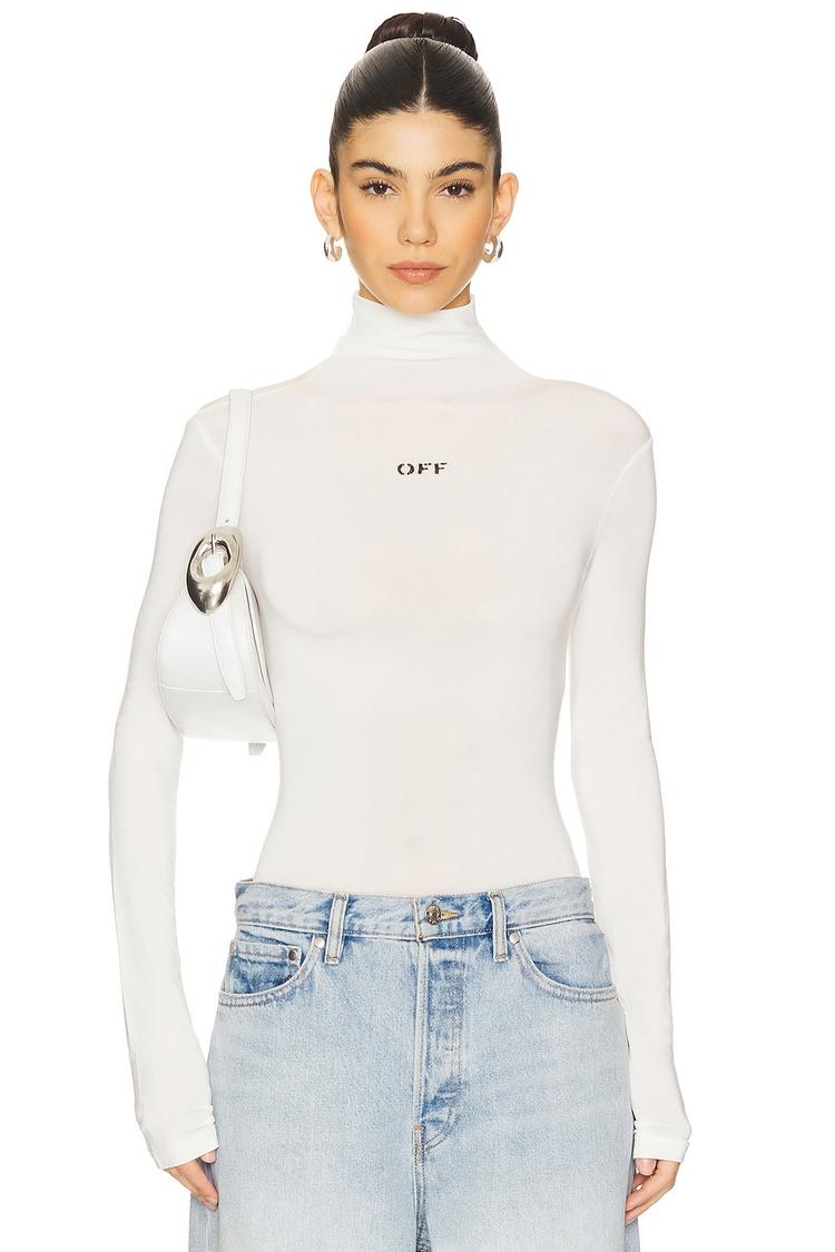 Effortless refinement meets street-ready edge in this Off-White second-skin turtleneck. Crafted in lightweight viscose blend (95% viscose, 5% elastane as per description), it hugs the body with a sculpted, 'second-skin' fit. The high turtle neck and ultra-slim silhouette create a sleek, minimalist line, finished in crisp white. A subtle front logo lends signature vibe without bulk. Long sleeves, hip-length hem for versatile layering. Wear alone with high-rise jeans for a clean weekend look, or layer under blazers and slip dresses for modern work-to-weekend style. Comfort-meets-cool that moves with you.
