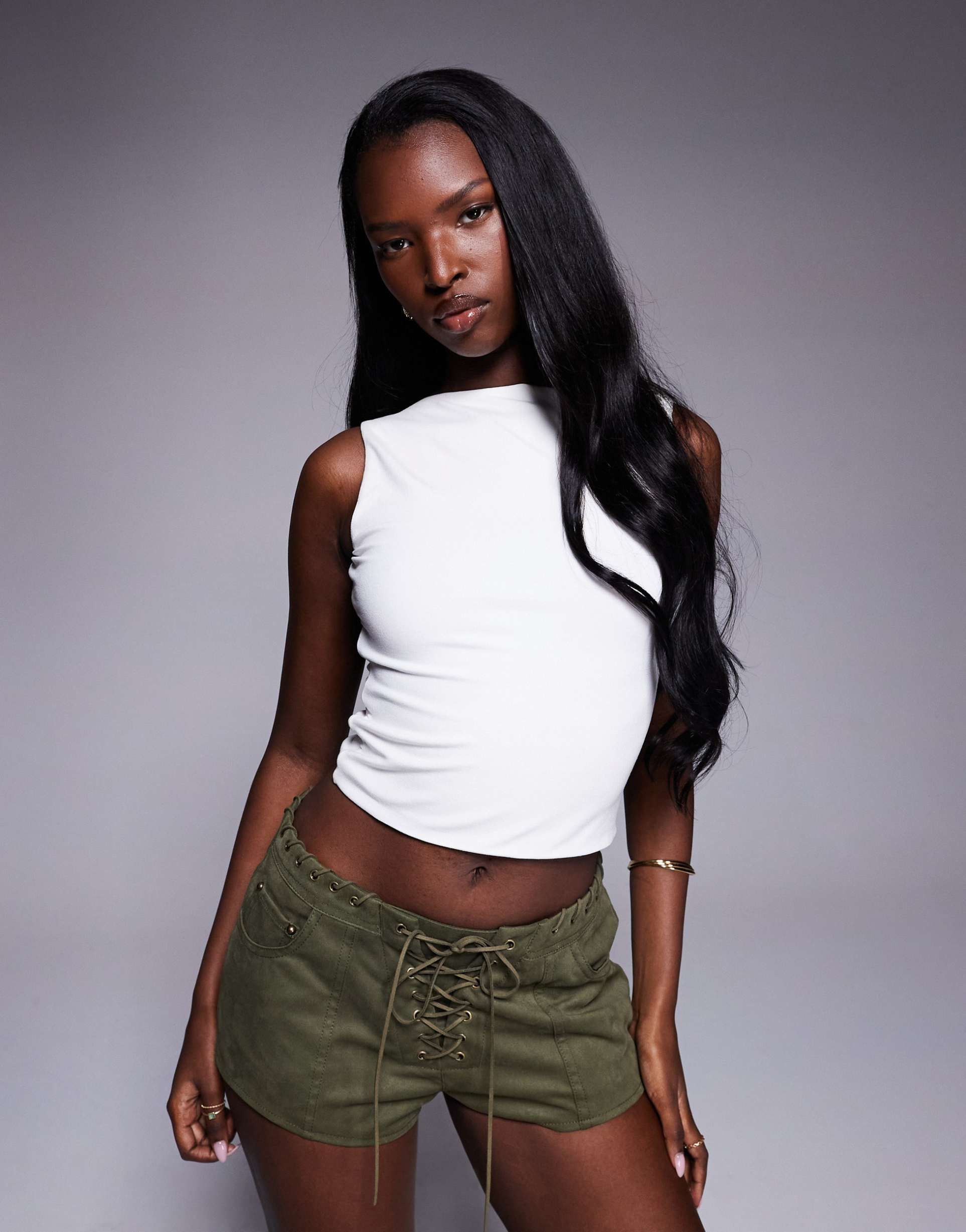 Soft and stretchy polyester jersey fabric shapes this cropped top with a clean boat neck and sleeveless styling for a minimalist look. The regular fit and open back detail add modern appeal, perfect for warm spring and summer days. Pair this versatile piece effortlessly for casual outings, streetwear vibes, or everyday wear. Its solid white hue and pullover closure make it an easy layering essential that blends comfort and style seamlessly.