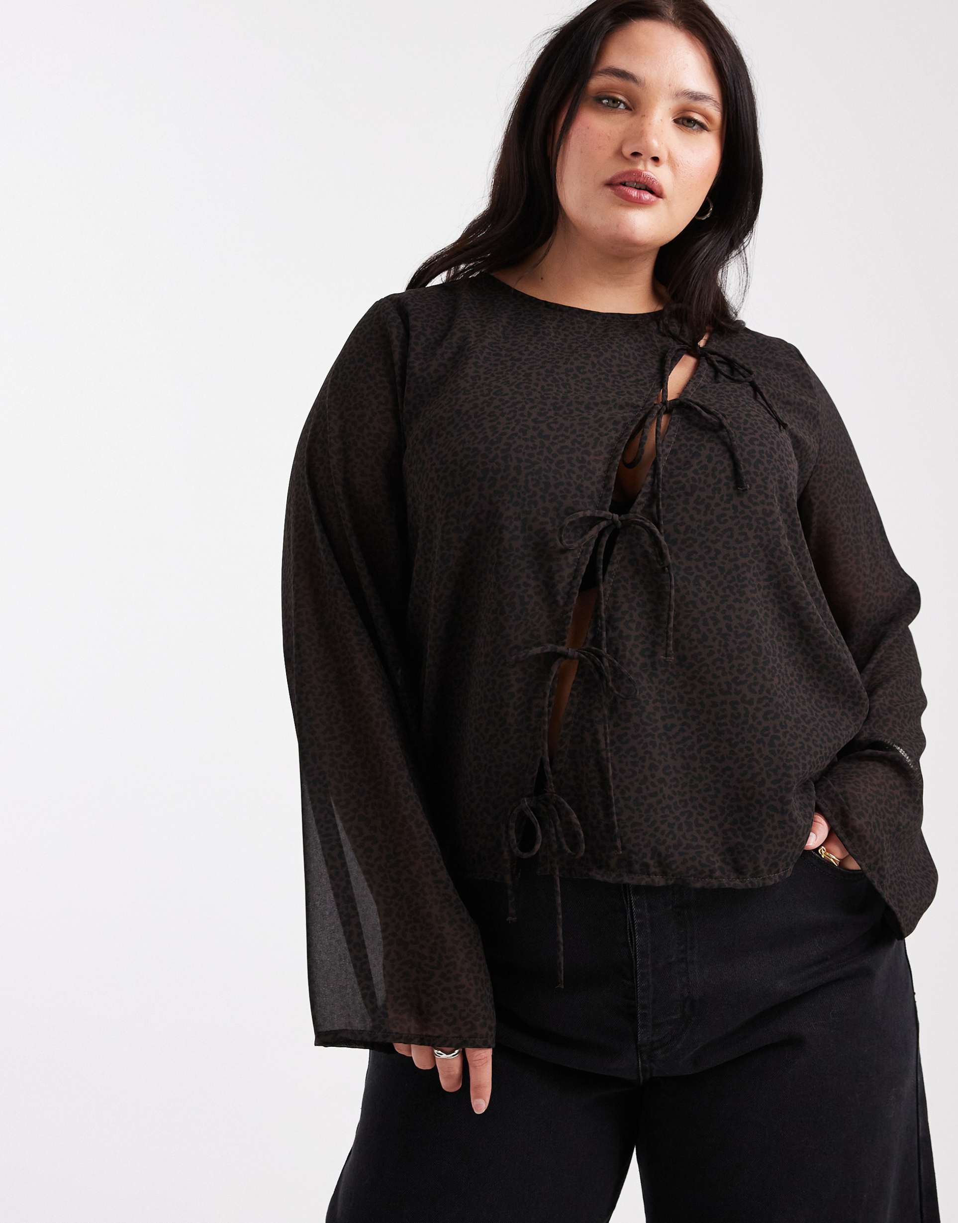 ONLY CURVE ASYMMETRIC TIE DETAIL TOP IN BROWN LEOPARD PRINT