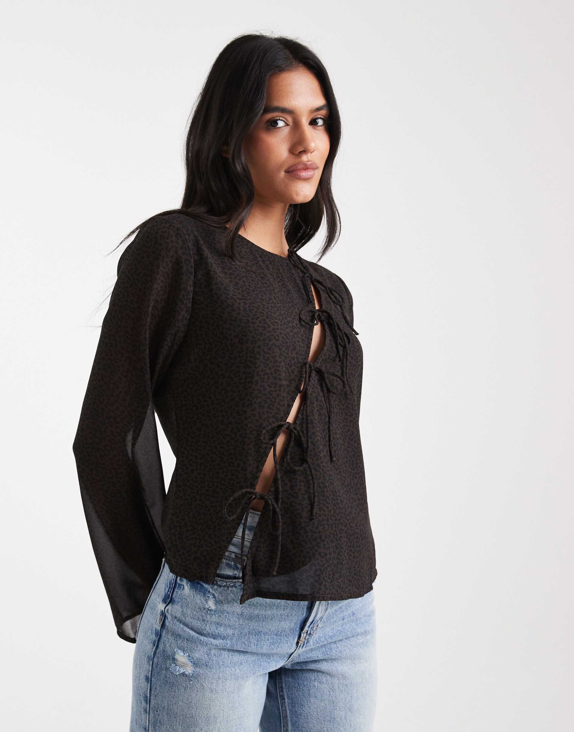 ONLY ASYMMETRIC TIE DETAIL TOP IN BROWN LEO PRINT