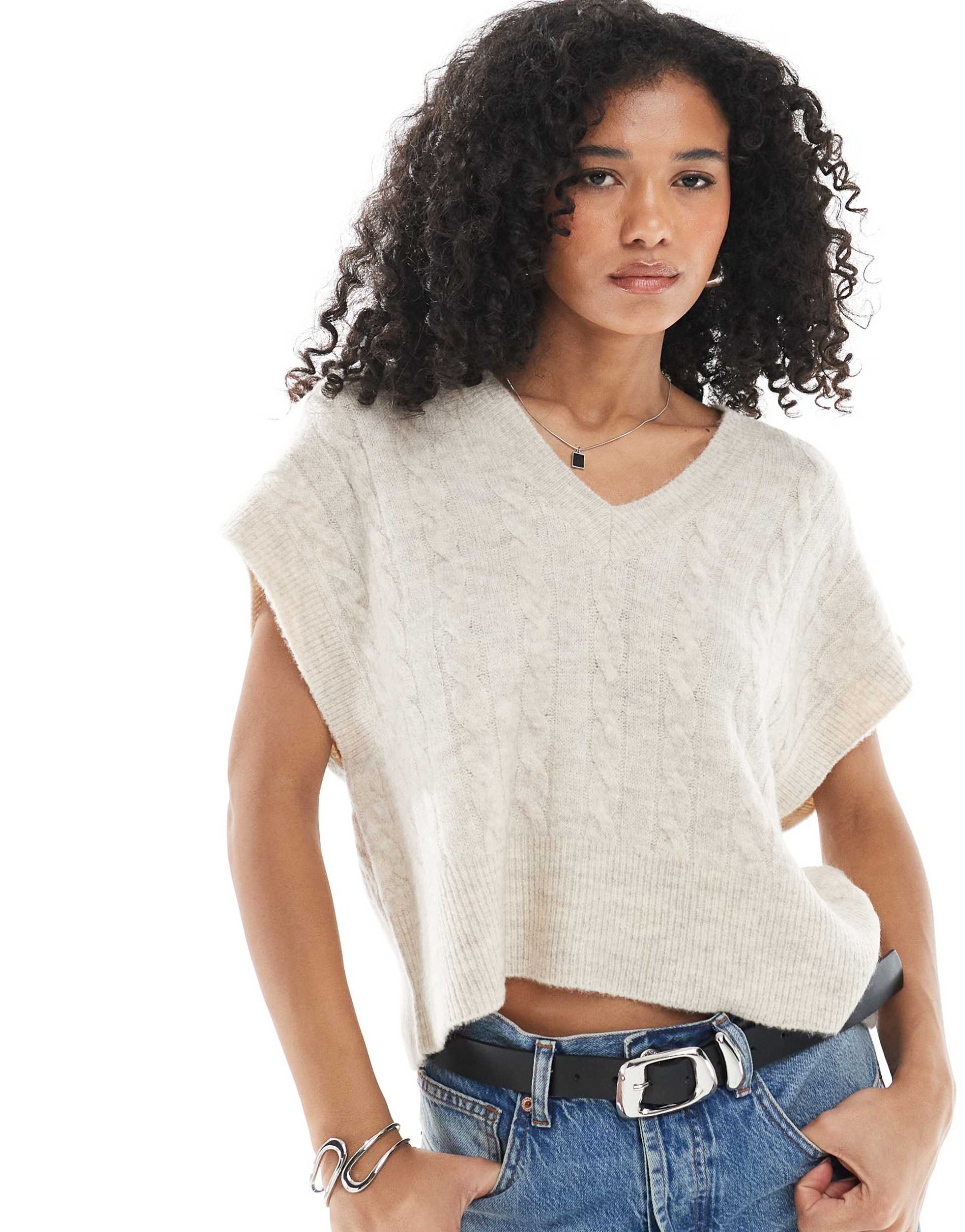 ONLY BOXY CABLE KNIT TOP IN OATMEAL
