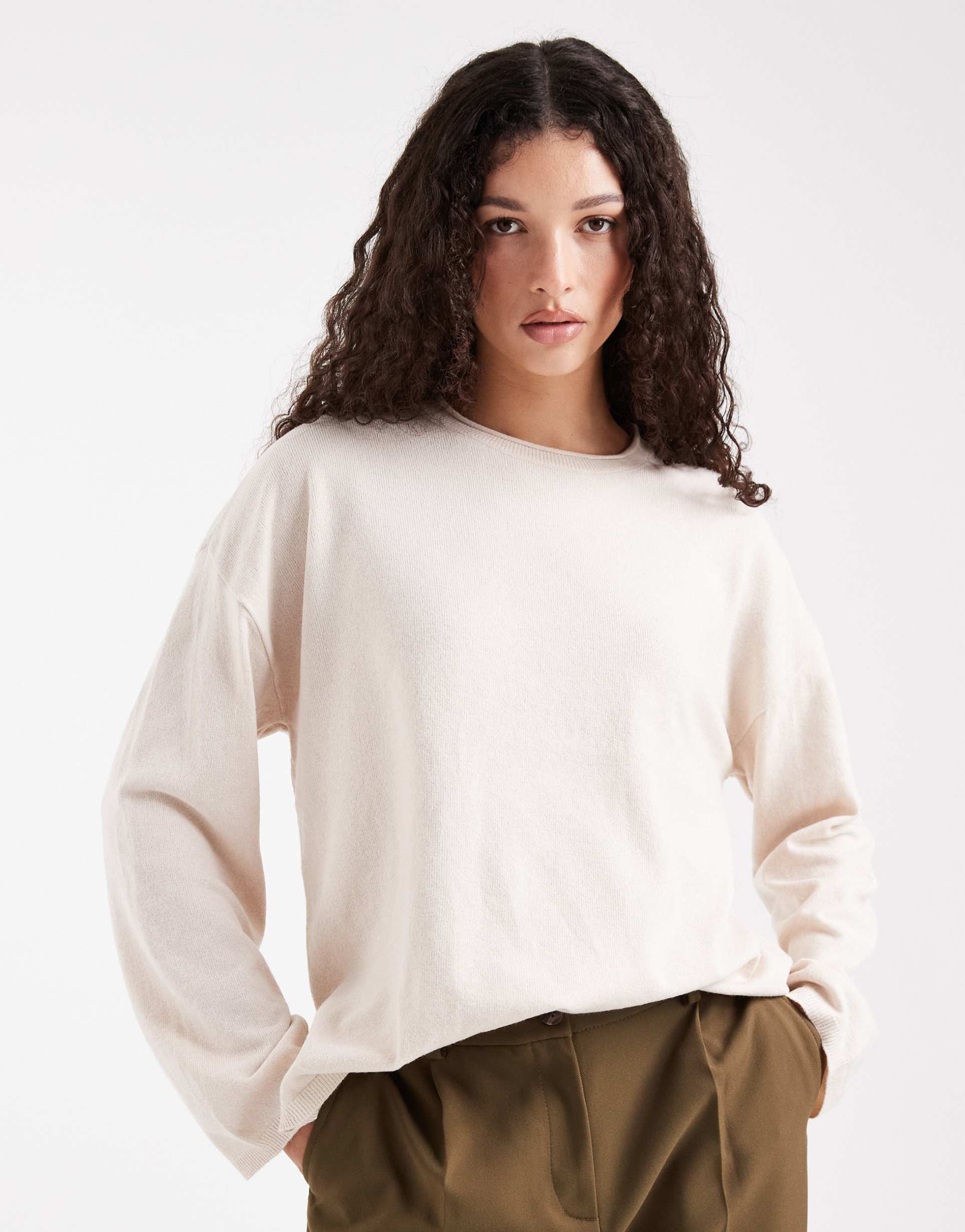 ONLY ROUND NECK BOXY KNIT TOP IN CREAM