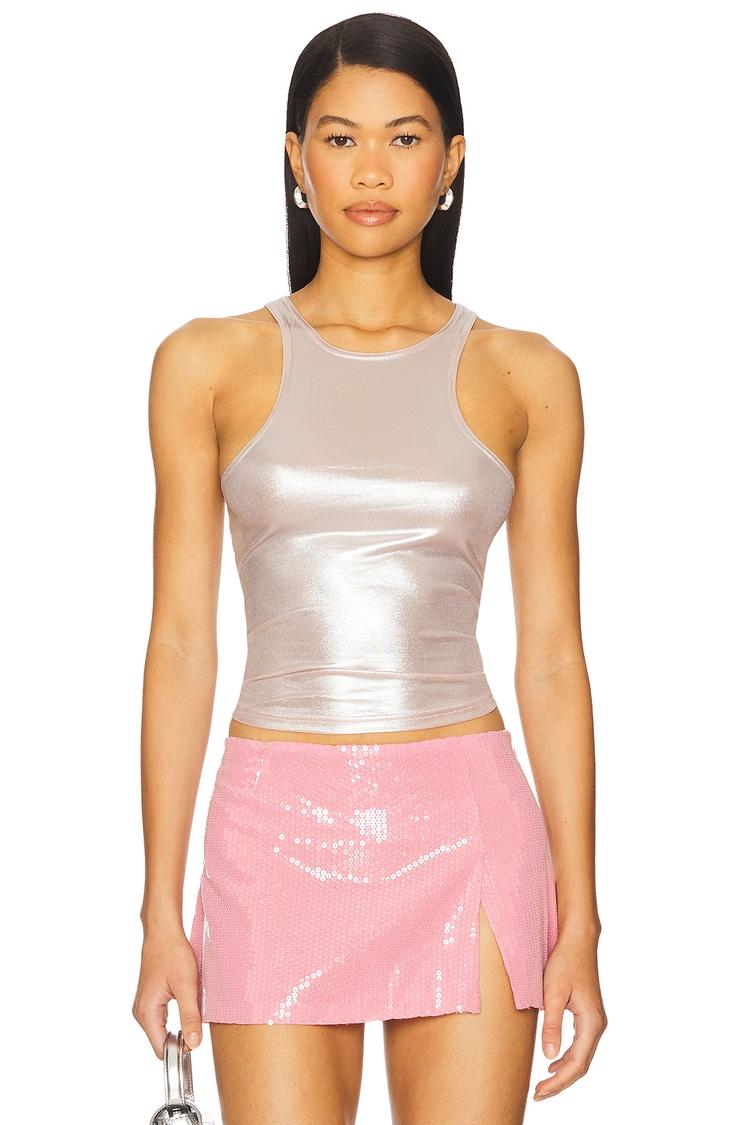 metallic blush tank top