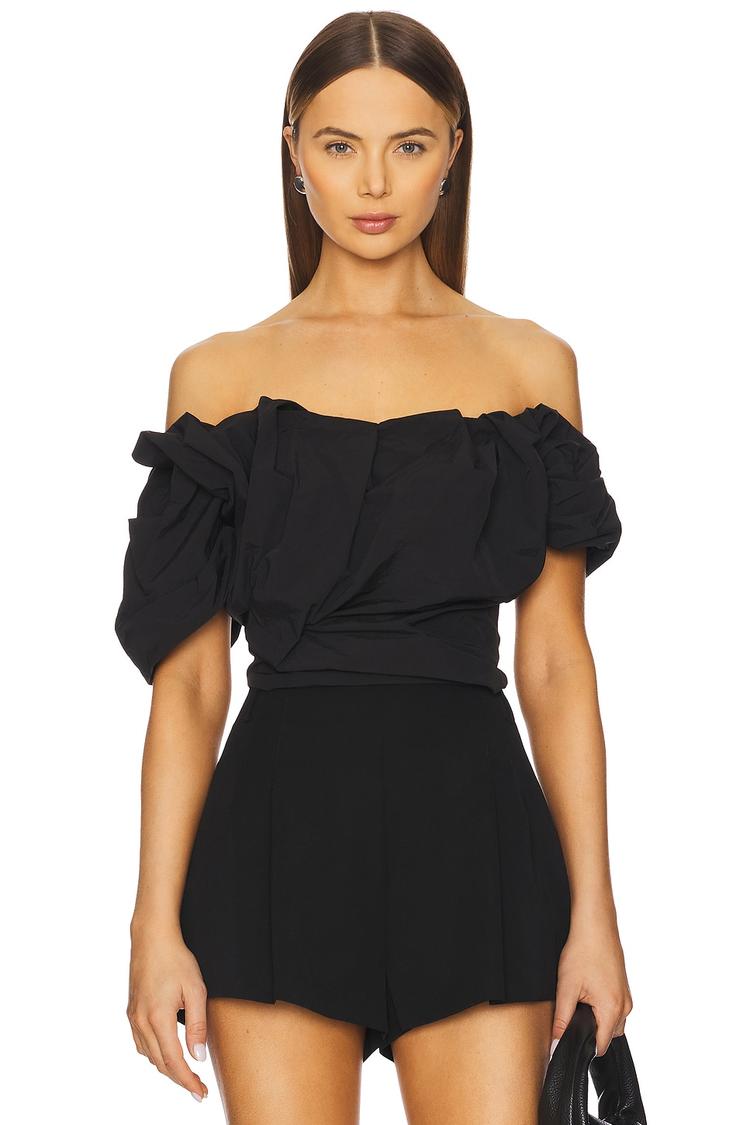 Experience effortless allure with the Paris Georgia Rio Bodice in deep black. This off-shoulder top-turned-romper elevates the moment with dramatic puff sleeves, a soft ruffle across the neckline, and a cinched waist that pours into tailored shorts for a flattering silhouette. Crafted in a dual-fiber blend—nylon-cotton exterior with viscose-spandex lining—the fabric offers stretch and comfort with a ripstop-inspired texture. A discrete concealed zipper keeps the line clean from shoulder to hem. Perfect for sunlit brunches, city dinners, or a chic night out—style with sandals by day or strappy heels by night.