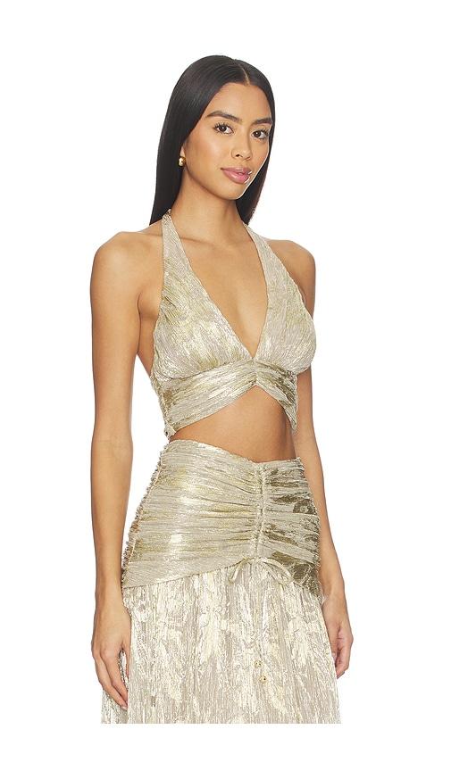 PATBO GOLDEN DUST LUREX TOP IN METALLIC GOLD.