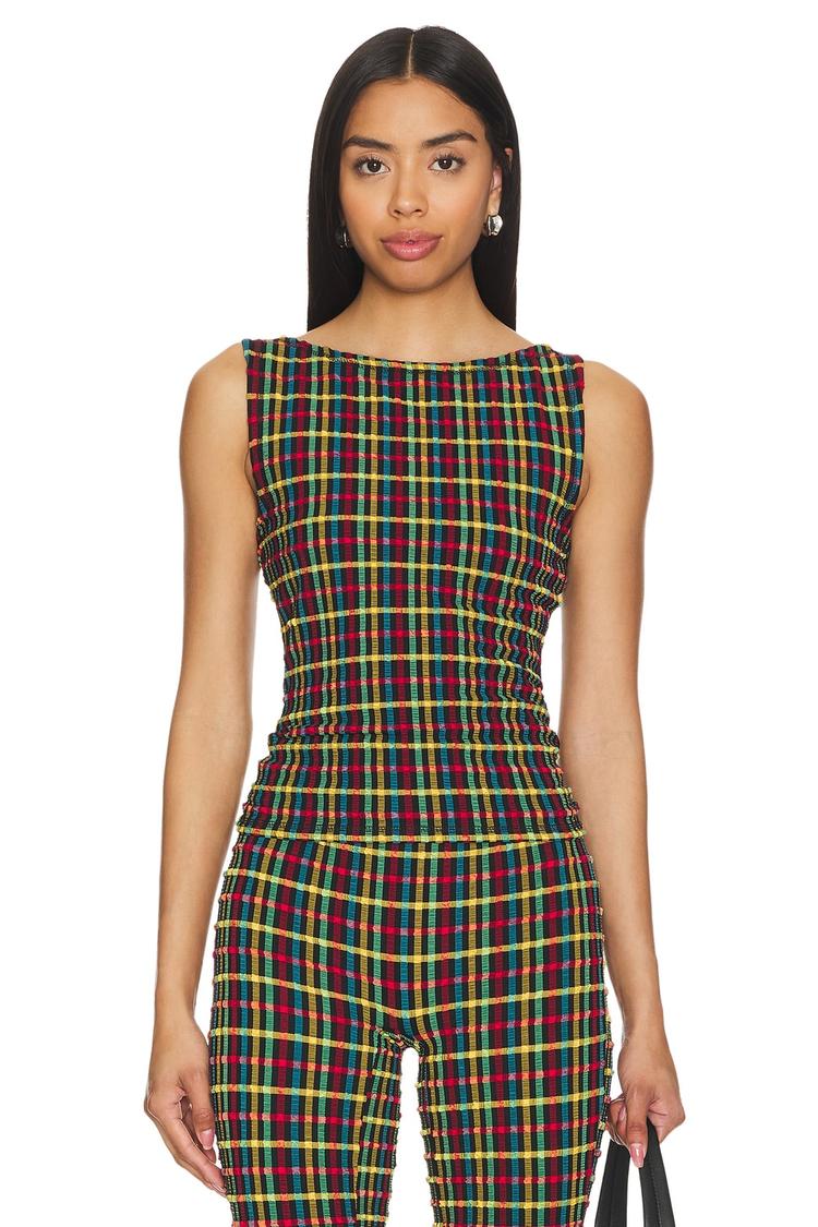 bright checkered sleeveless top