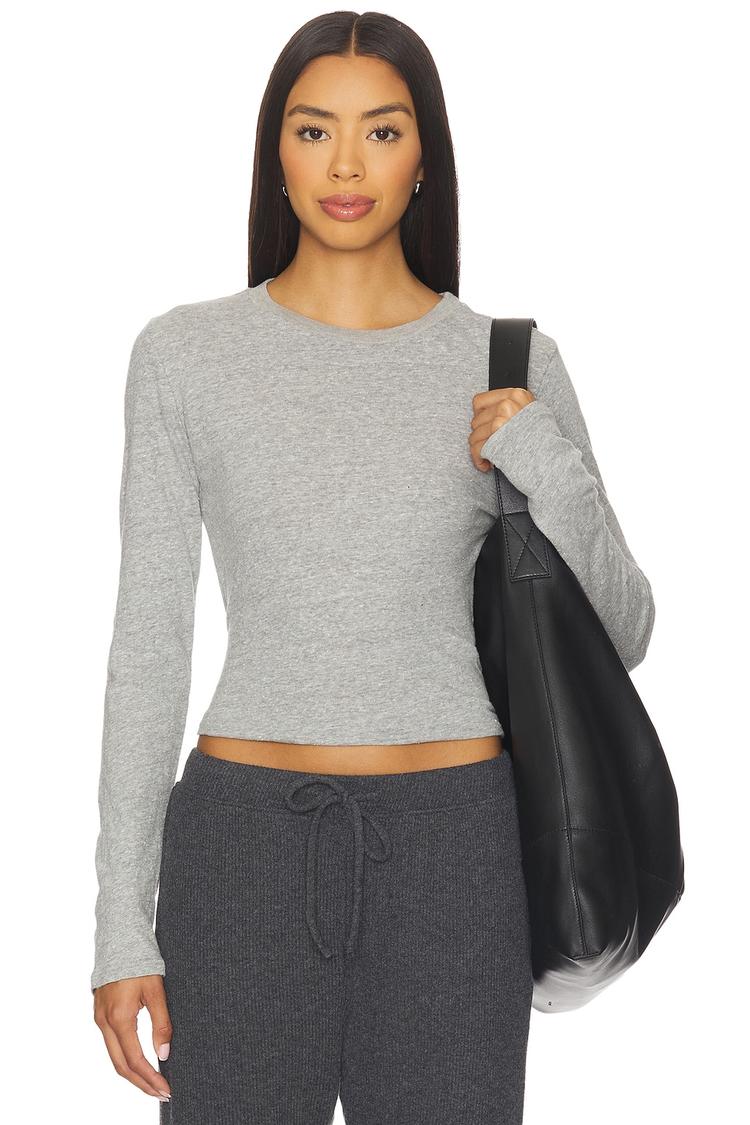 Soft cotton blend fabric and a boxy fit define this long sleeve top with a classic crew neck. The matte gray color and solid pattern give it a minimalist, casual chic vibe perfect for everyday wear, loungewear, or casual outings. Its waist-length hem and pullover styling ensure easy wearability, making it a versatile staple for all seasons and occasions that call for comfort and simplicity.