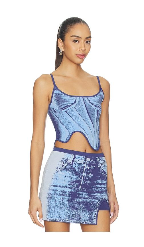 PH5 MILA DENIM PRINT TANK TOP IN BLUE.