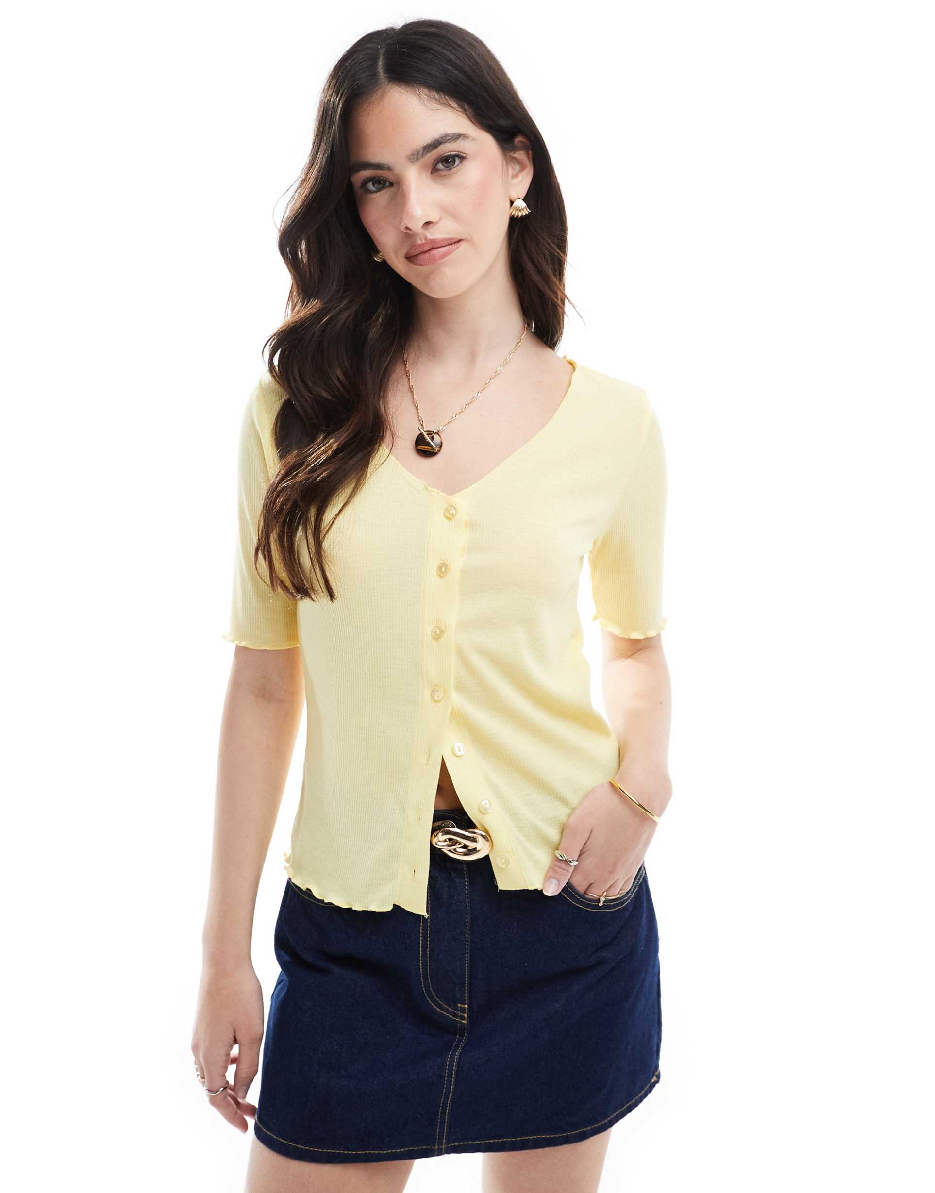 PIECES LETTUCE EDGE BUTTON FRONT SHORT SLEEVE TOP IN BANANA YELLOW