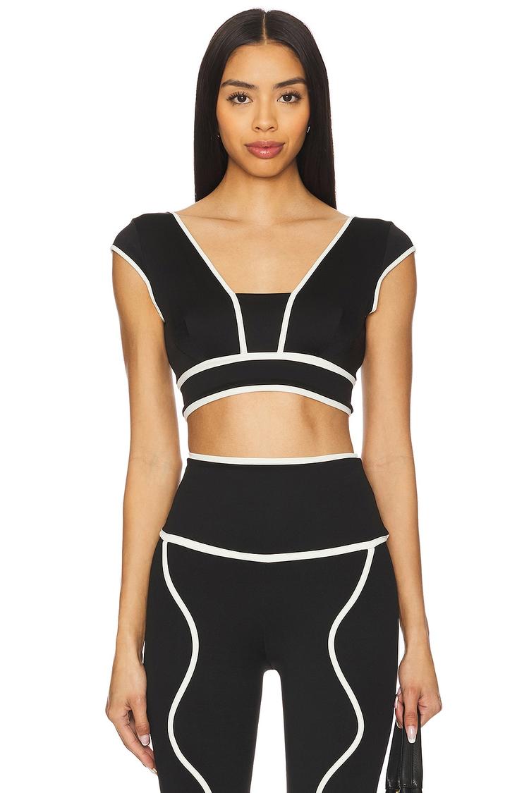 Sleek and fitted, this cropped rib top in black with white piping showcases a modern sporty chic vibe. Crafted from a stretchy polyamide-elastane blend, its square neckline and cap sleeves deliver a clean, athletic silhouette ideal for athleisure or workout sessions. The pullover design and midweight fabric ensure comfort and ease, while the contrast piping adds subtle visual interest. This versatile piece transitions effortlessly from casual outings to active days, making it a staple for all-weather wear and contemporary style.