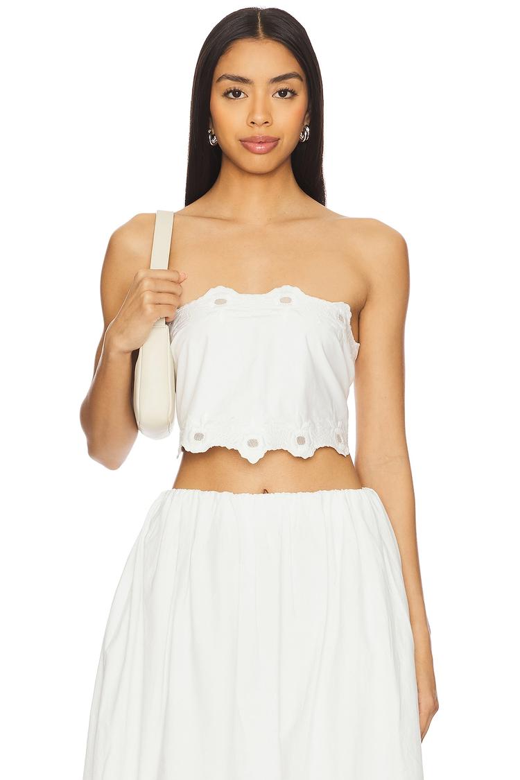 Soft cotton poplin meets delicate embroidery in this cropped bandeau top featuring a straight neckline and strapless styling. The back tie closure adds a flirty, adjustable fit, while lace trim enhances the hem with bohemian charm. Ideal for warm spring and summer days, this versatile piece pairs effortlessly with high-waisted skirts or shorts. Perfect for casual outings, brunch dates, and vacation adventures, it offers a relaxed yet polished look with breathable fabric and flattering regular fit.