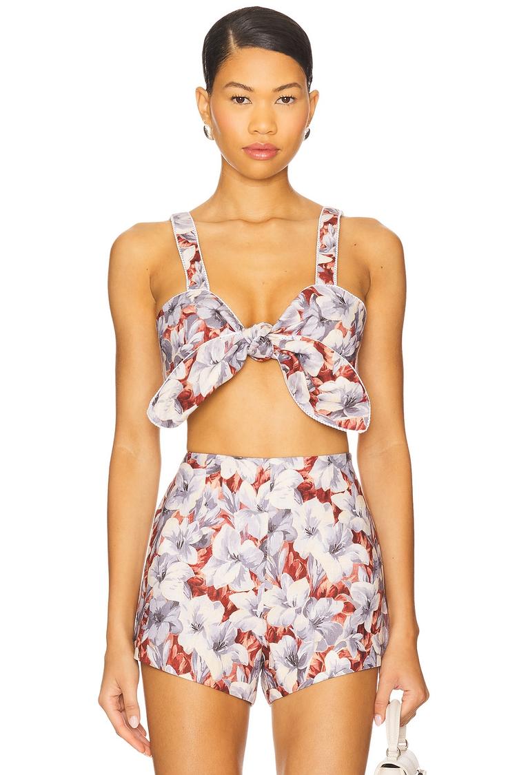 Soft matte white linen paired with dusty rose and brown floral prints creates a breezy, bohemian vibe in this cropped bandeau top. The sweetheart neckline and wide straps frame the shoulders beautifully, while the front ruffle detail adds feminine texture. Perfectly fitted with a self-tie closure, this lightweight linen piece is ideal for spring and summer casual outings, beach days, or relaxed brunches. Embrace effortless style with breathable fabric and a flattering cropped length that pairs seamlessly with high-waisted bottoms for vacation-ready ease.
