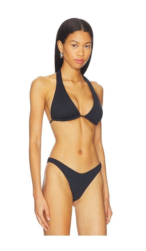 POST SWIM LOLO HALTER BIKINI TOP IN BLACK.