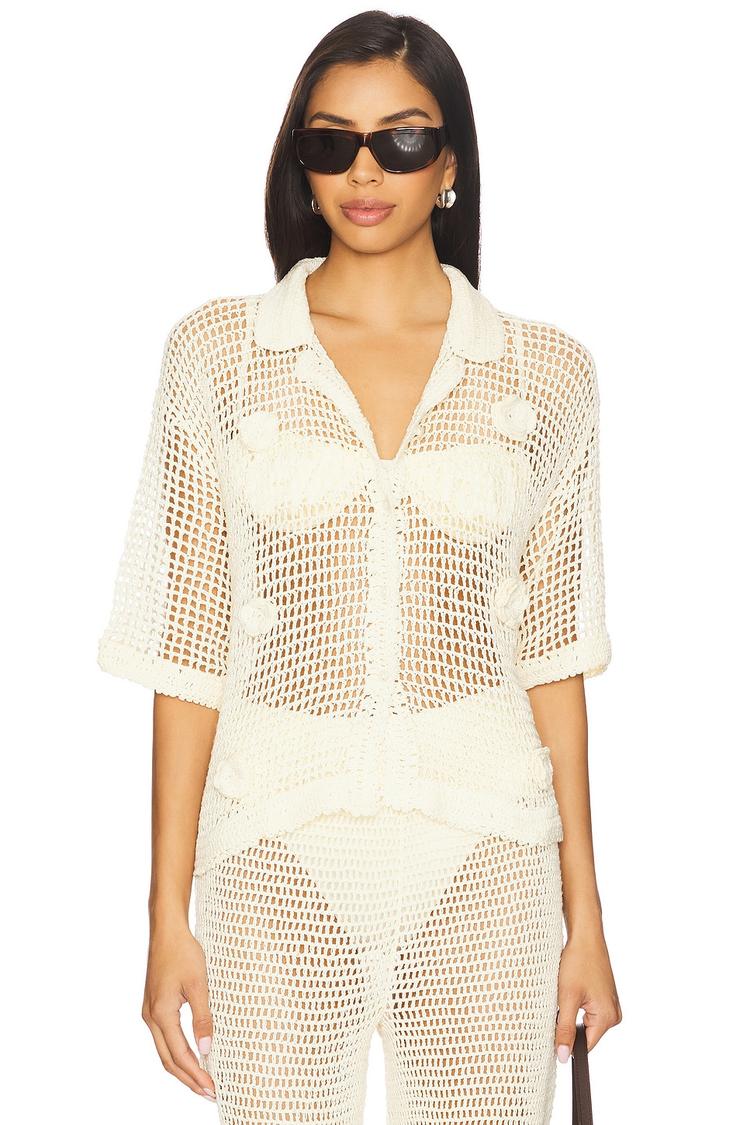 Midweight crochet fabric and 3-D tonal floral appliques define this hip length shirt with a regular fit and classic collar. The half sleeves and front button closure enhance its laid-back bohemian vibe, while the sheer cream cotton material adds an airy, breathable feel. Perfect for casual outings, brunch dates, or vacation days, this lightweight piece offers a stylish yet comfortable option for warm spring and summer wear.
