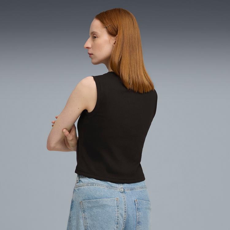 PUMA ELEVATED ESSENTIALS WOMEN'S RIBBED TANK TOP IN BLACK, SIZE XL