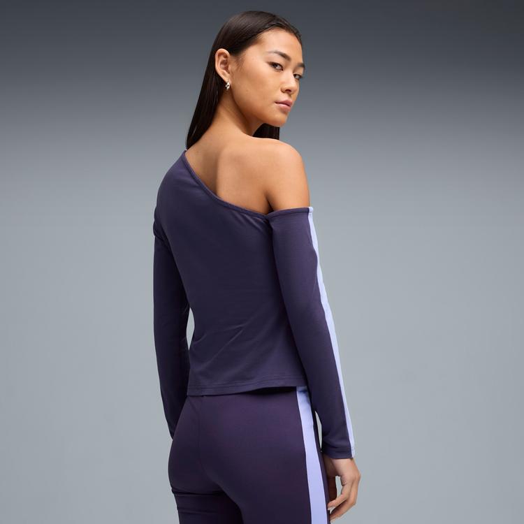 PUMA T7 WOMEN'S ASYMMETRIC TOP IN PURPLE, SIZE S