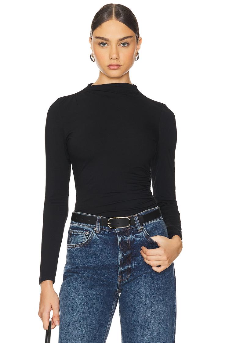 Sleek and versatile, this fitted shell top features a classic mock neck and long sleeves crafted from a soft modal-spandex jersey blend. Its matte black hue and hip-length cut create a flattering silhouette ideal for layering or standalone wear. Perfect for casual days, workwear, or business casual settings, the top offers comfort with a modern minimalist style. The pull-on design ensures easy wear, making it a staple piece for autumn, winter, and all-weather wardrobes.