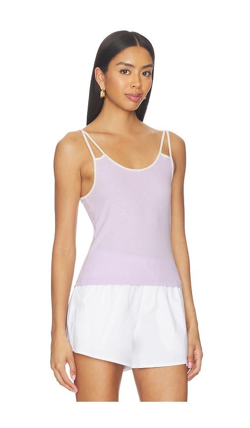 RE/DONE CONTRAST SPAGHETTI TANK TOP IN PURPLE.