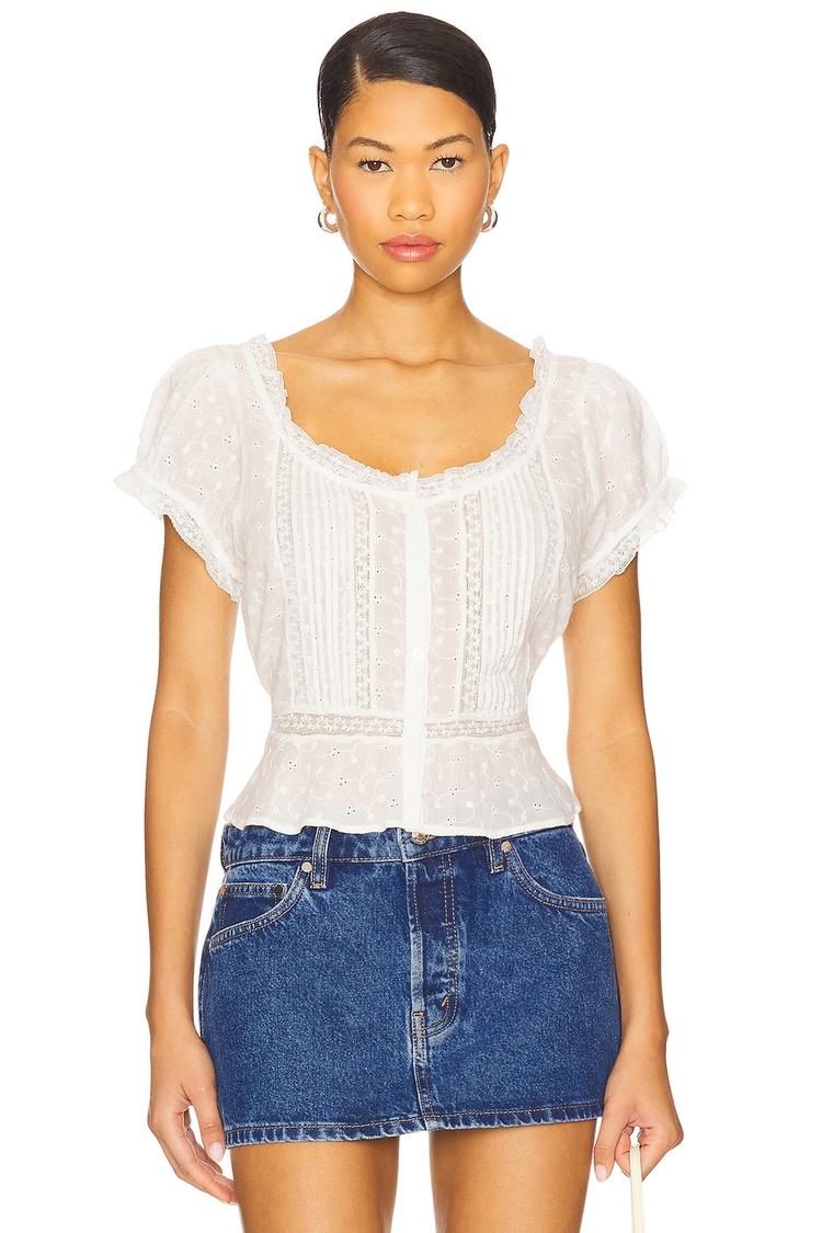 Delicate lace trim and lightweight eyelet cotton fabric define this romantic Peplum top with a fitted silhouette. Featuring a flattering square neckline and half sleeves, it closes with front buttons and a back tie accent for added charm. Its semi-sheer texture adds a subtle allure, making it perfect for casual outings, brunch dates, and everyday spring or summer wear. This waist-length piece offers classic style with a bohemian touch, ideal for those seeking comfort and elegance in warm weather.