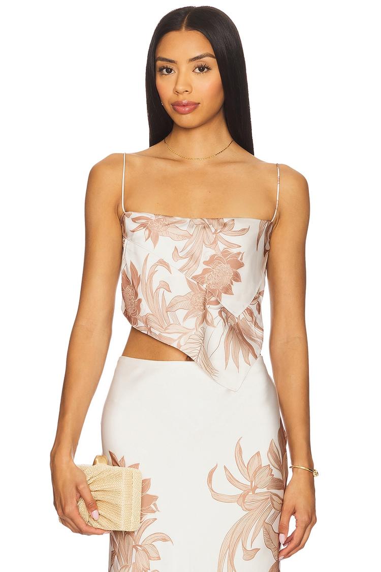 Soft satin fabric and an asymmetrical kerchief hem bring a modern edge to this cropped camisole. Featuring a square neckline and delicate spaghetti straps, it hugs the body with a slim fit perfect for warm weather. The all-over beige floral print contrasts elegantly against the off-white base, making it an ideal choice for casual outings, brunch dates, and night events. Lightweight and stylish, this top adds a chic, sexy vibe to any look with its unique hemline and smooth texture.
