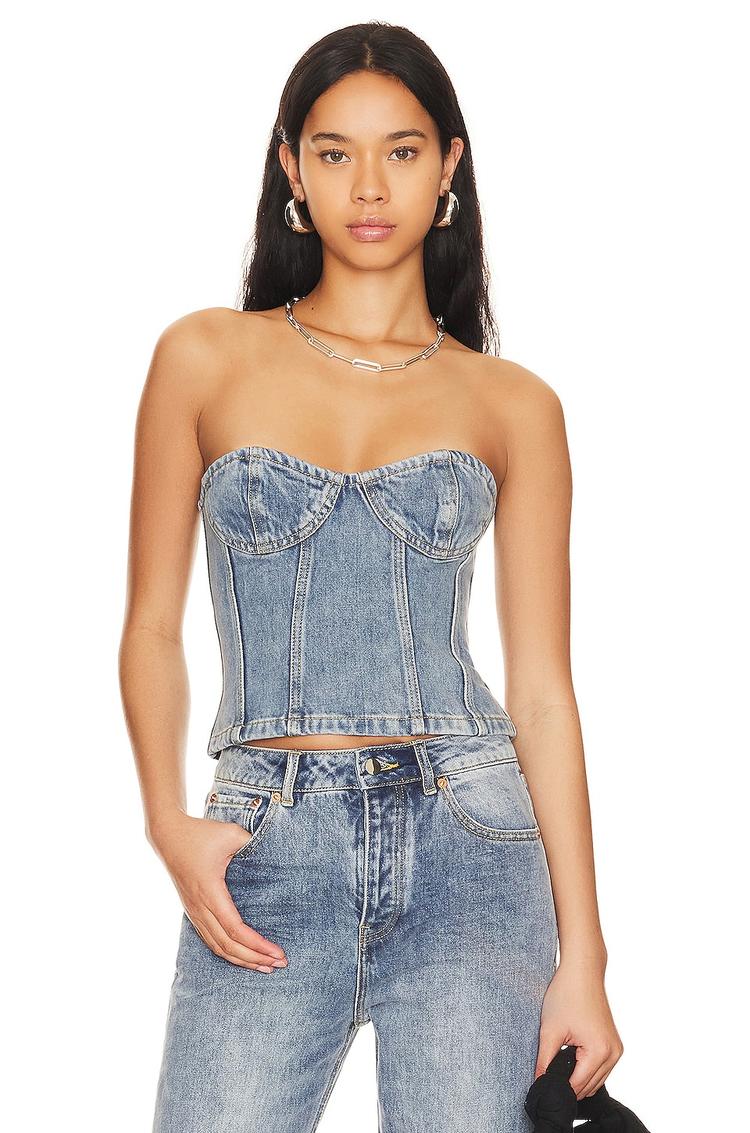 Denim in a fitted corset style elevates casual dressing with a cropped length and sweetheart neckline, perfect for warmer seasons. The strapless sleeveless design highlights the contour bust, while an exposed back zipper adds an edgy touch. Crafted from 100% cotton denim, this Sasha Top blends comfort and style effortlessly. Ideal for brunch, casual outings, and night events, it pairs beautifully with high-waisted bottoms for a modern, trendy look that stands out.